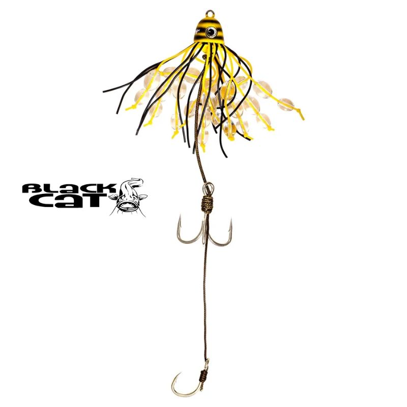 El Black Cat Battle Teaser 80g en la combinación de colores Yellow/Black es un señuelo técnico diseñado para la pesca vertical activa del siluro, utilizando el patrón cromático de alta visibilidad