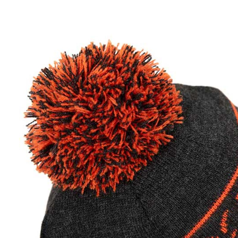 Color y Diseño: Presenta un diseño de marga negra con un pompón naranja contrastante en la parte superior. La marca Fox está bordada en naranja en el borde vuelto.