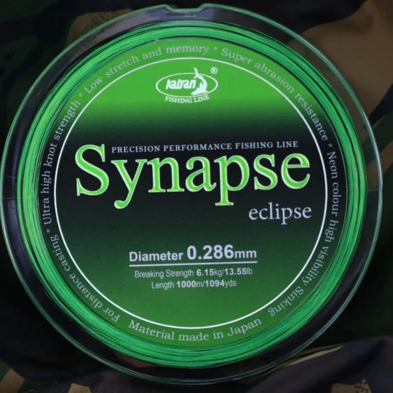 El hilo Katran Synapse Eclipse es un monofilamento de pesca de carpfishing innovador, diseñado para ofrecer un equilibrio único entre visibilidad para el pescador y camuflaje para el pez, apto para pescar tanto de día como de noche.