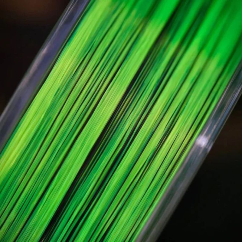 Camuflaje Diurno: Los segmentos neón se intercalan con tramos de 50 cm de pigmento negro. Estos pigmentos oscuros hacen que la línea sea virtualmente invisible para los peces, incluso los más cautelosos, durante las horas soleadas y en aguas claras, ya que rompen el contorno del hilo contra el fondo del lago.