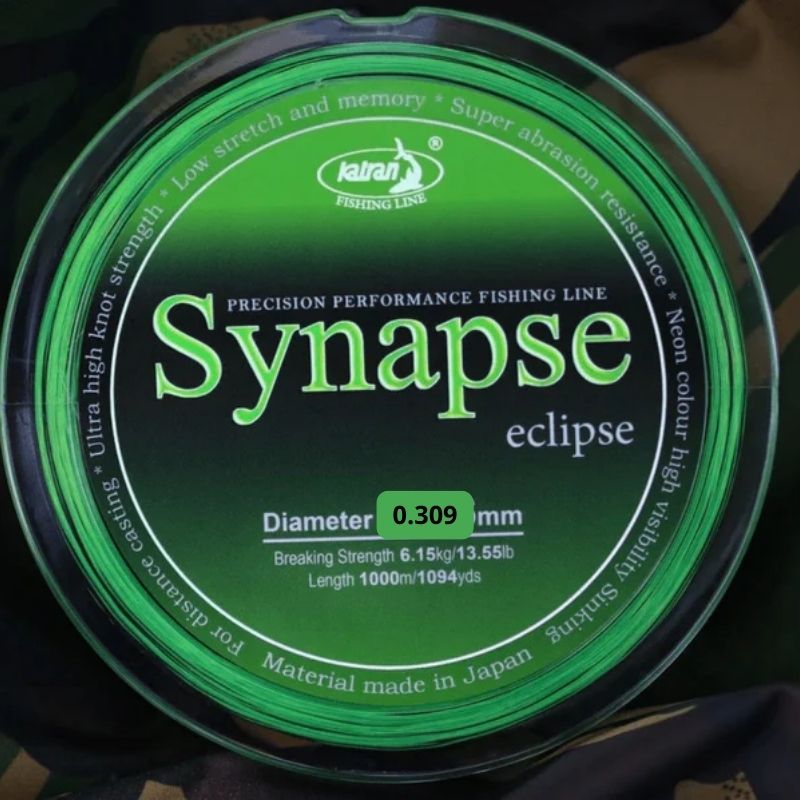El hilo Katran Synapse Eclipse es un monofilamento de pesca de carpfishing innovador, diseñado para ofrecer un equilibrio único entre visibilidad para el pescador y camuflaje para el pez, apto para pescar tanto de día como de noche.