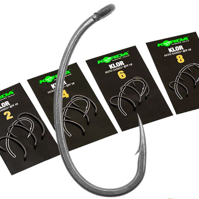El anzuelo Korda Klor en talla 4 es un modelo diseñado por Danny Fairbrass, pensado para ser un anzuelo agresivo, fuerte y de giro rápido, con un excelente potencial de clavada en una gran variedad de montajes. Es un anzuelo versátil, adecuado para presentaciones como Ronnie rig, snowman, wafter rig y montajes combinados (combi rigs).