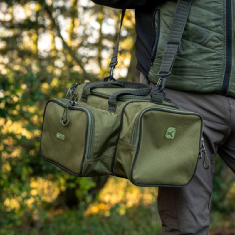 El Korum Progress Compact Carryall 25L es un macuto de transporte de dimensiones reducidas, diseñado para el pescador que prioriza la movilidad y la organización modular en sesiones cortas.