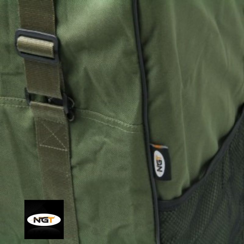 El código que has proporcionado, NGT FLA-BEDBAG- XL -589, corresponde a la bolsa/funda de transporte NGT Deluxe para bedchair (tumbona de pesca) en tamaño XL, no a una bedchair completa. Está diseñada para transportar tumbonas grandes o una tumbona estándar con un saco de dormir acoplado.