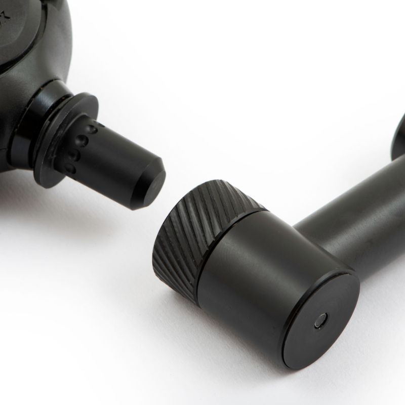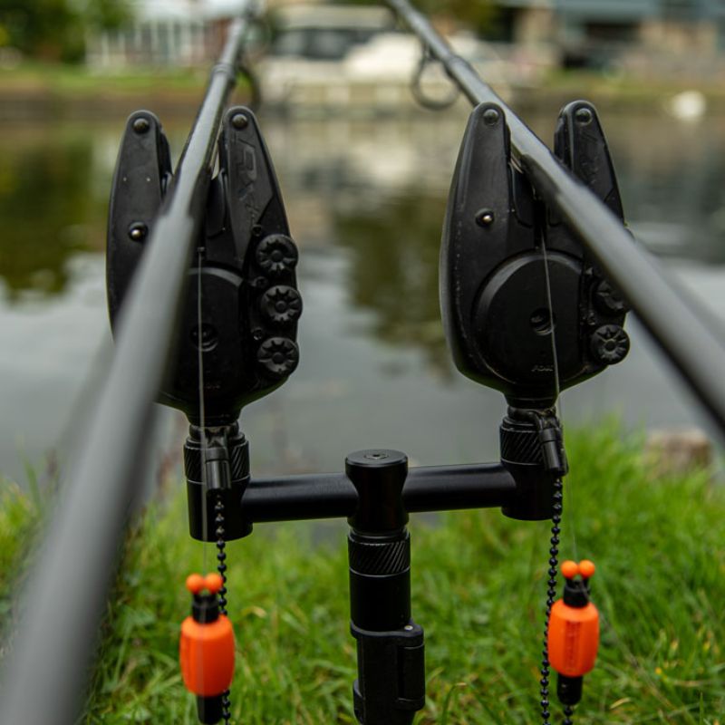 Las alarmas y los apoya cañas se pueden unir a las barras de BUZZ y soltar con un simple giro del collar estriado.
