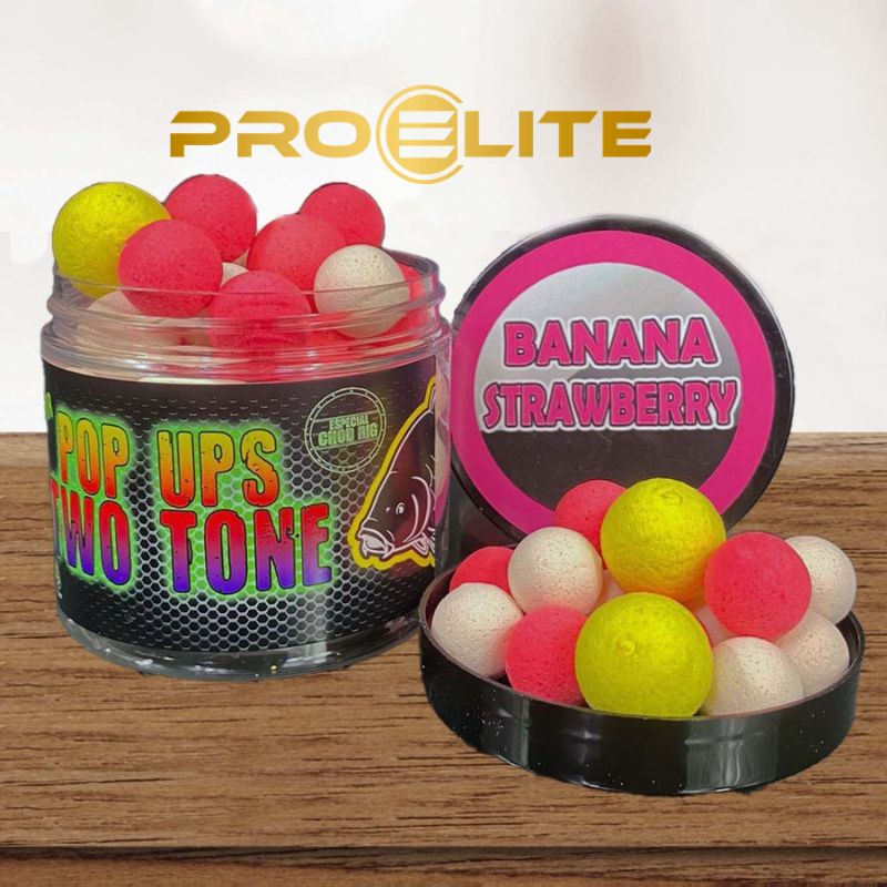 Los Pop-Ups Two Tone Banana Strawberry Flúor 14-20mm de ProElite Baits combinan la dulzura clásica del plátano y la fresa con un formato visual de doble color flúor. Esta mezcla frutal es un estándar de éxito en el carpfishing, diseñada para ofrecer una atracción instantánea mediante un fuerte contraste visual y una señal olfativa irresistible.