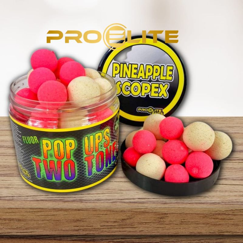 Los Pop-Ups Two Tone fluor Pineapple Scopex 14-20mm de ProElite Baits combinan la pareja de aromas más famosa del carpfishing con un innovador formato de doble color. Esta mezcla de piña y scopex ofrece un perfil dulce y cítrico inconfundible, diseñado para maximizar las capturas mediante un fuerte estímulo visual y olfativo.