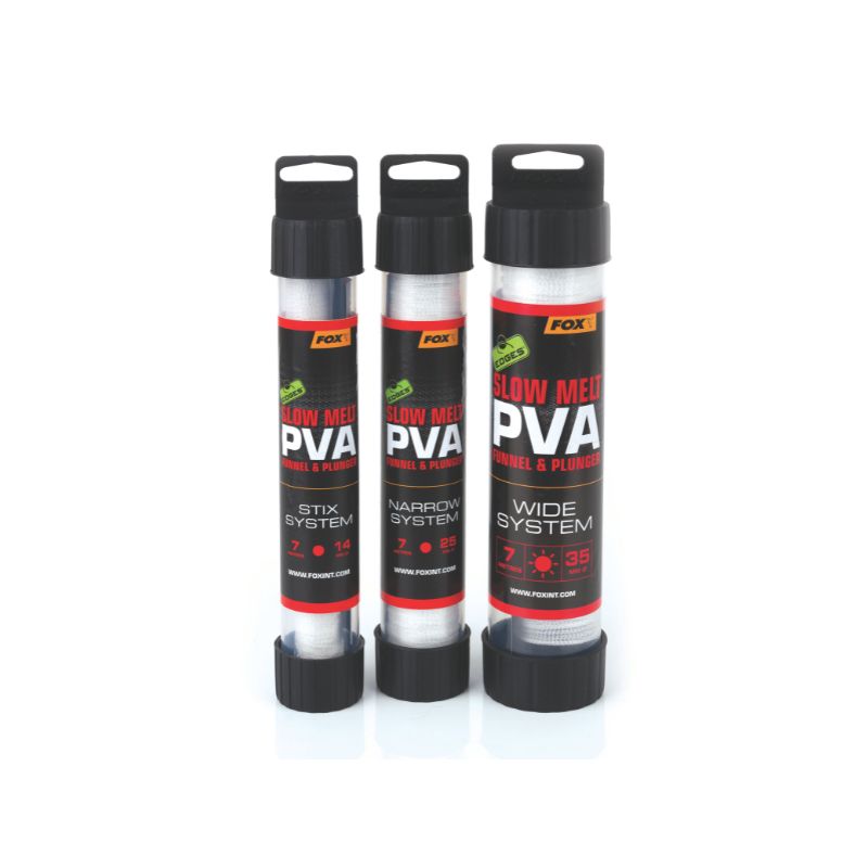 El artículo PVA SLOW MELT 35MM 7M FOX se refiere al sistema completo (no solo una recarga) de malla de PVA de disolución lenta de la marca Fox, que incluye la malla, el tubo de carga y el émbolo.