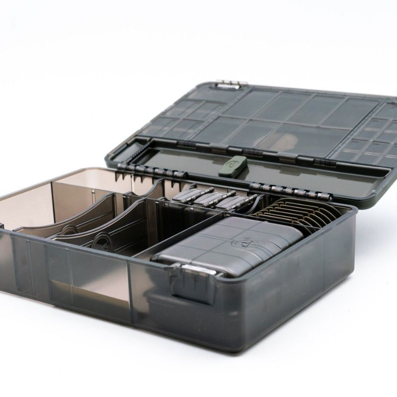 La Korda Tackle Box Large (Caja de Aparejos Grande de Korda) es un sistema de almacenamiento de alta capacidad diseñado para organizar de manera eficiente todo el material terminal del pescador de carpfishing en un solo lugar. Sustituye a múltiples cajas más pequeñas al integrar numerosas funciones y compatibilidad con otros accesorios de Korda.