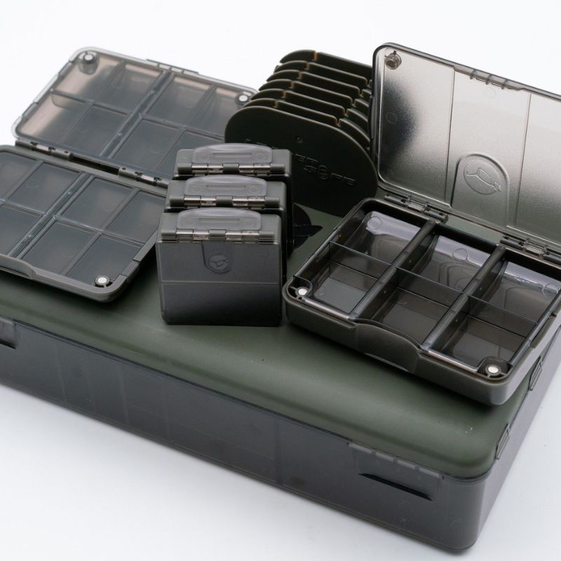 La Korda Tackle Box Large está disponible tanto vacía como en una «Collection» que incluye una selección de cajas accesorias populares para un sistema de almacenamiento