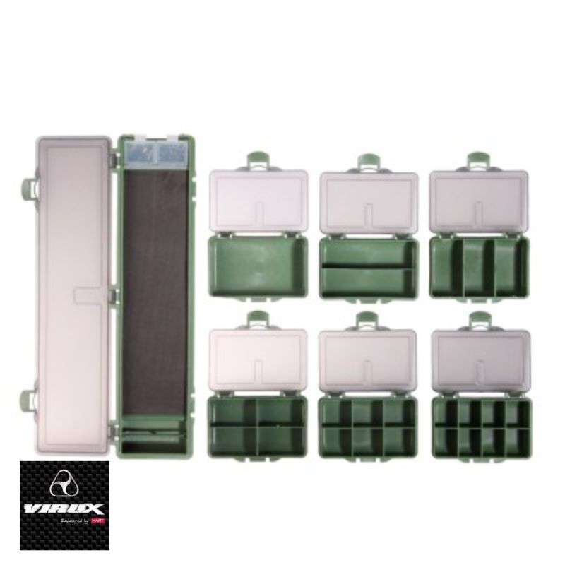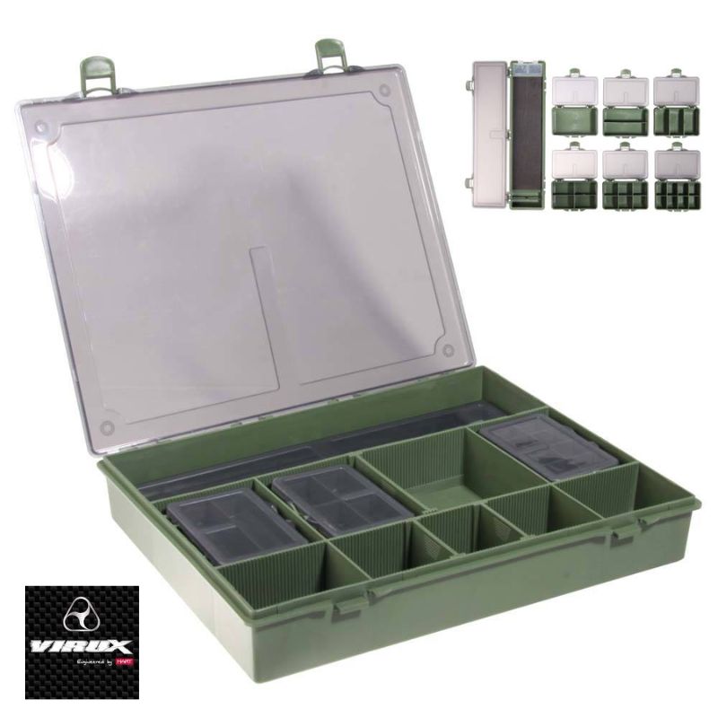 La Virux CR03 es una caja rígida de gran capacidad diseñada para la organización integral de accesorios y material de montaje (tackle) en la pesca de carpfishing. Se diferencia por ser un sistema de «caja portacajas», permitiendo una clasificación modular del equipo.