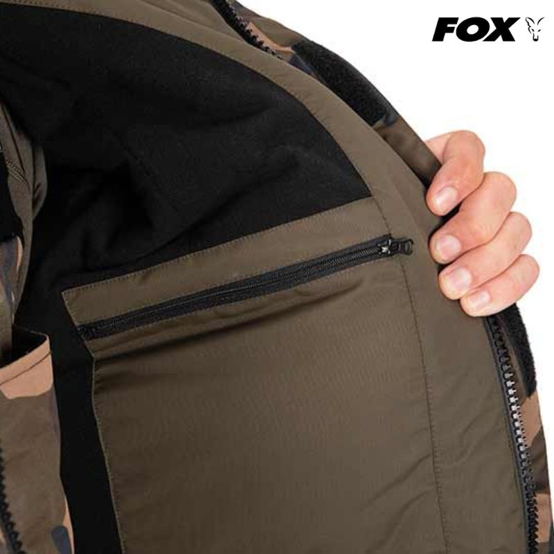 La chaqueta también cuenta con un bolsillo interno con cremallera en el pecho, puños internos acanalados, correas de muñeca ajustables